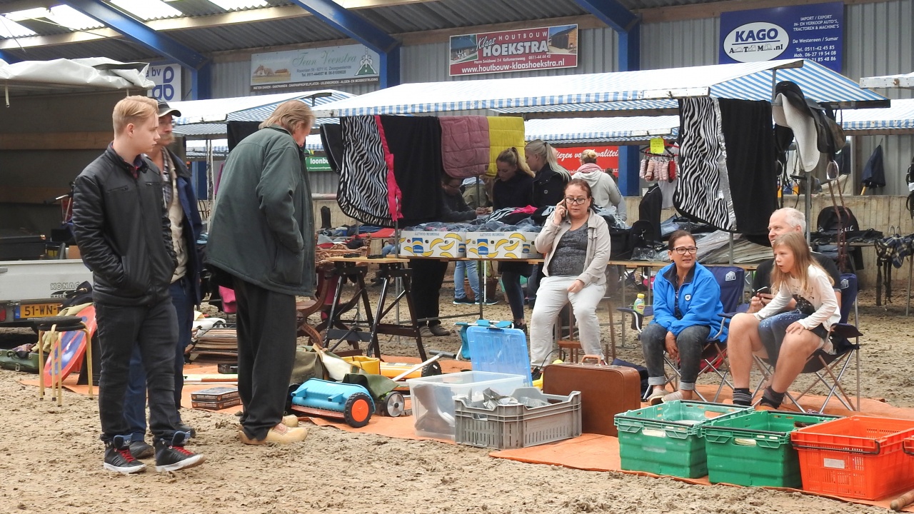 Vanaf acht uur was men welkom op de braderie en paardenmarkt. Voor de kleintjes was er een springkussen en een rondritje op een pony. Om half twee was er live muziek met het duo Roel & Marty.