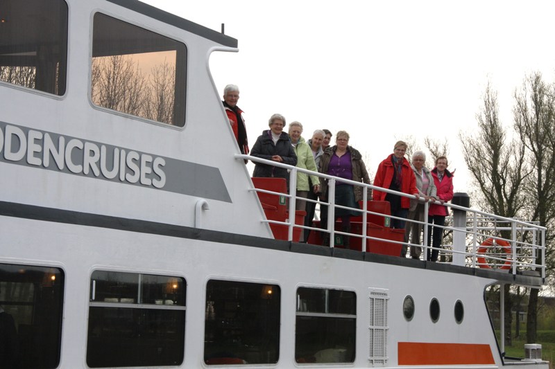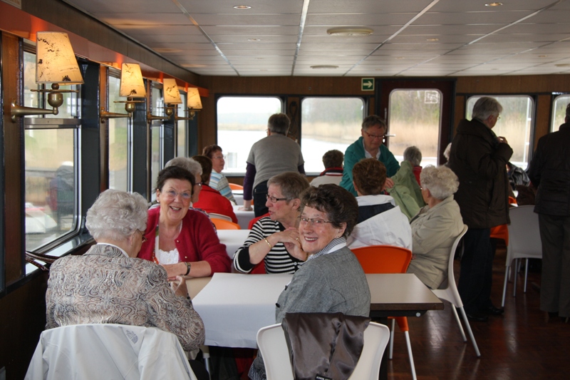 Het was voor de vrouwen een hele leuke ervaring om alle bekende plekjes in de buurt nu eens vanaf het water te zien . De brug in de Lauwersmeerweg ging voor hen open en later gingen ze door de sluizen te Dokkumer Nieuwezijlen en Lauwersoog. Ondertussen werd aan boord genoten van koffie met appeltaart en een lunch buffet. Om één uur kwamen ze aan op Schiermonnikoog.