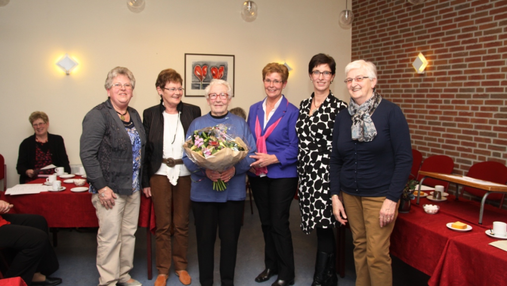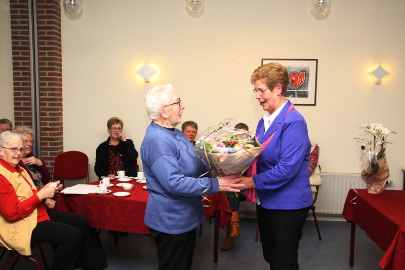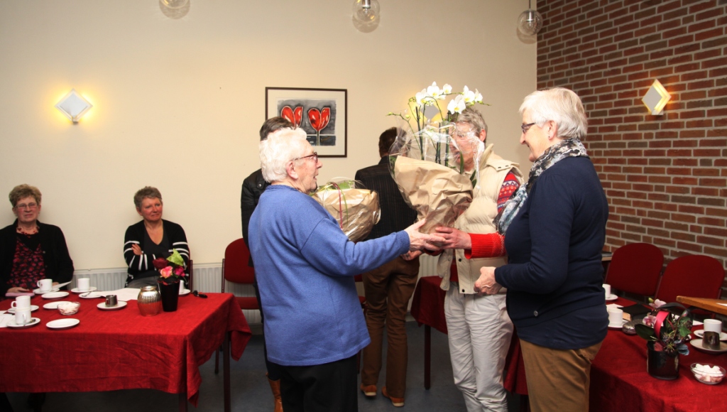 Volgens de voorzitter is zij één van de trouwste leden. Zij mist eigenlijk nooit een repetitie. Mevr. De Haan zelf was erg verrast dat zij alweer 25 jaar lid is. Als verrassing waren haar twee dochters aanwezig bij de huldiging. Zij kreeg een mooi boeket bloemen en een oorkonde uit handen van de voorzitter. De voorzitter sprak de wens uit dat zij nog lang in gezondheid mag zingen.