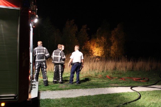 In de tijd dat er gewacht moest worden werden de slangen alvast klaar gelegd. Na het aantrekken van de duikpakken werd de slang naar de overkant gebracht waarna het vuur al snel onder controle was. De mogelijkheid bestond dat er nog iemand op het eiland aanwezig was omdat er een duikplank lag. tijdens een korte zoektocht werd er niemand aangetroffen.