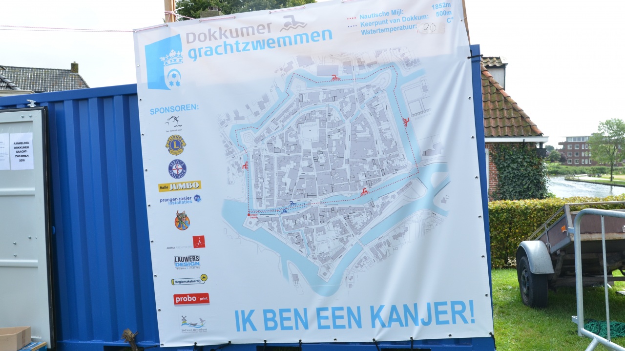 Zondagmiddag vond de tweede editie plaats van de zwemwedstrijd ‘De Nautische Mijl van Dokkum”. Bij deze zwemwedstrijd, georganiseerd door zwemclub De Granaet, moesten de deelnemers een afstand van één nautische mijl (1852 meter) afleggen door de grachten van Dokkum.