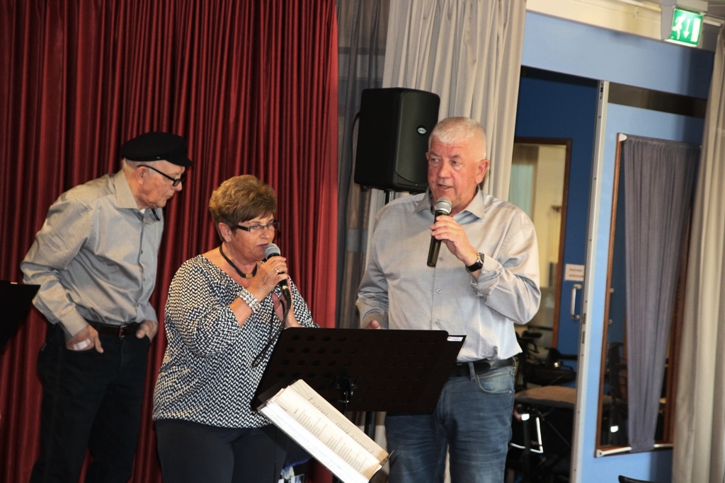 Het werd een fantastisch optreden voor de aanwezigen en het koor. Het koor had een nieuwe outfit aan wat was aangeschaft bij Terstal Mode uit Kollum. Ook de accordeonisten waren zomers gekleed en het geheel mocht er zijn. Het koor zong diverse liederen, zoals “Sofietje”, Droomland, Que sera sera en “Fannacht hie ik in frjemde dream”. Daarnaast “The Fields of Athenry” met als solisten Tineke Dijkstra en Bouke Zijlstra en “One way Wind” met als solisten Geert Dijkstra en Riki Mulder, vielen enorm in de smaak. Mieke Baars las een gedicht voor over de problemen waar de oudere in deze moderne tijd tegenaan loopt.