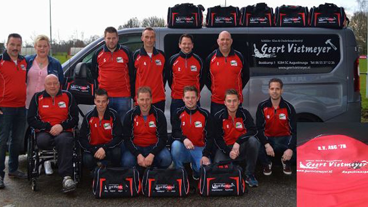 De zaalvoetballers van s.v. ASC’75 hebben in Schilder-, Klus en Onderhoudsbedrijf Geert Vietmeyer (tevens voor al uw bouwactiviteiten), een nieuwe sponsor gevonden om de tassen en teampolo’s, die hoognodig aan vervanging toe waren, ter beschikking te stellen. De mannen uit Augustinusga, Surhuizum en omstreken zijn natuurlijk helemaal in hun nopjes met deze nieuwe aanwinsten en willen daarvoor Geert en Tineke Vietmeyer hartelijk bedanken!