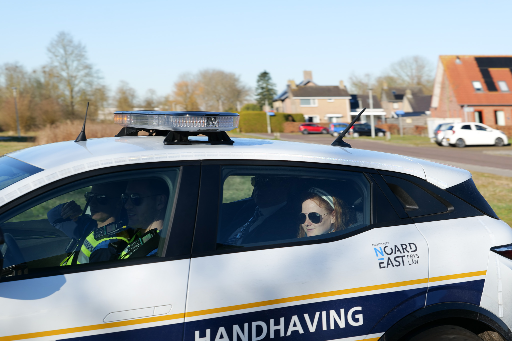 Woensdagochtend bezochten kinderburgemeester Esmee en burgemeester Johannes Kramer twee groepen 7 uit onze gemeente. Zij overhandigden persoonlijk het lespakket aan groep 7 van basisschool De Welle uit Burdaard en de Regenboogschool uit Dokkum. Samen met twee boa’s van de gemeente kwamen ze aan in de auto van Handhaving. Met zwaaiende sirenes stapten ze uit op het schoolplein. Allebei met een zonnebril op zodat ze in hun rol zaten om in te breken in de klaslokalen. Eenmaal in de klas gaven ze samen uitleg over de taken van de kinderburgemeester. Esmee overhandigde een speciale gouden envelop – met daarin het lespakket – aan de leerkracht. Hierin zitten onder andere de aanmeldformulieren, posters en het lesmateriaal.