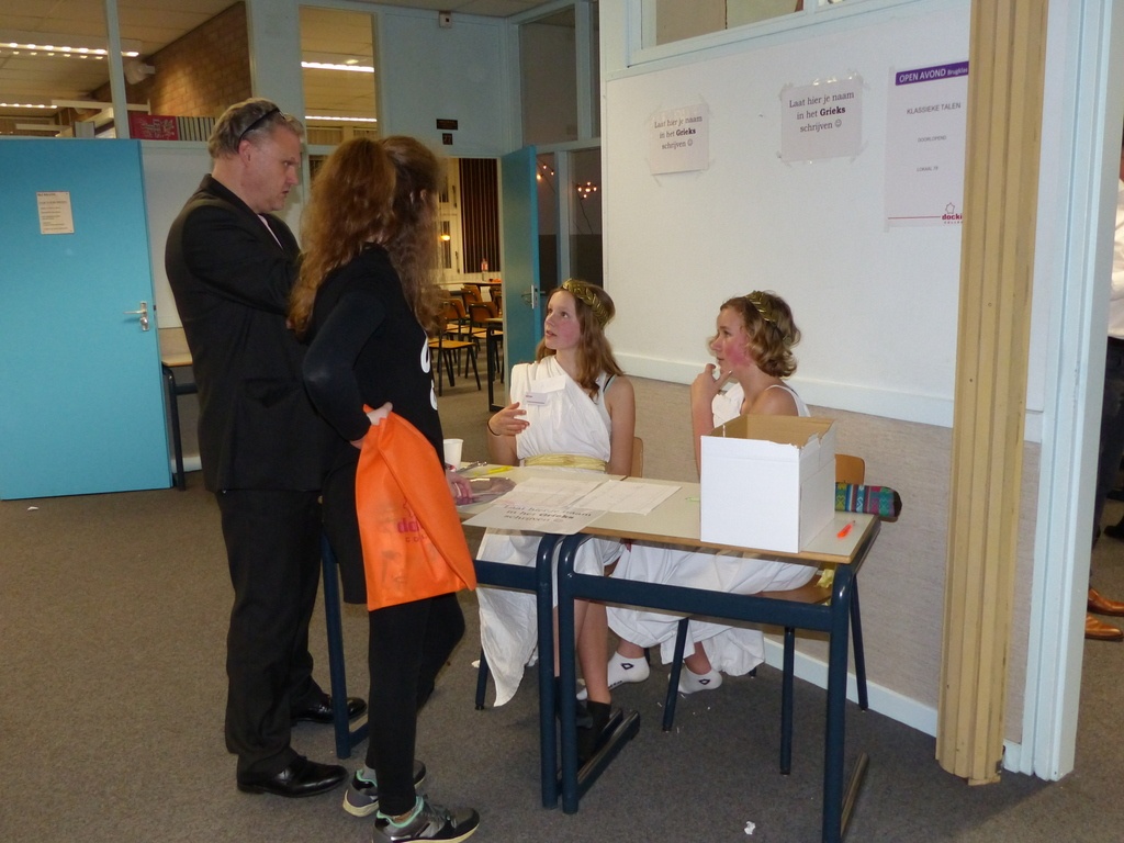 Leerlingen die mythologische figuren uitbeelden wezen de bezoekers de weg naar ’t Omnium waar bovenbouwdocenten en -leerlingen een algemene indruk gaven van het programma in de bovenbouw havo/vwo. De decaan gaf informatie hoe de leerlingen op het Dockinga College ondersteund worden bij de keuze voor de profielen maar ook vakken als Management & Organisatie, wiskunde, Culturele Kunstzinnige Vorming gaven naast tal van andere vakken een inkijk in het zeer uitdagend examenprogramma.