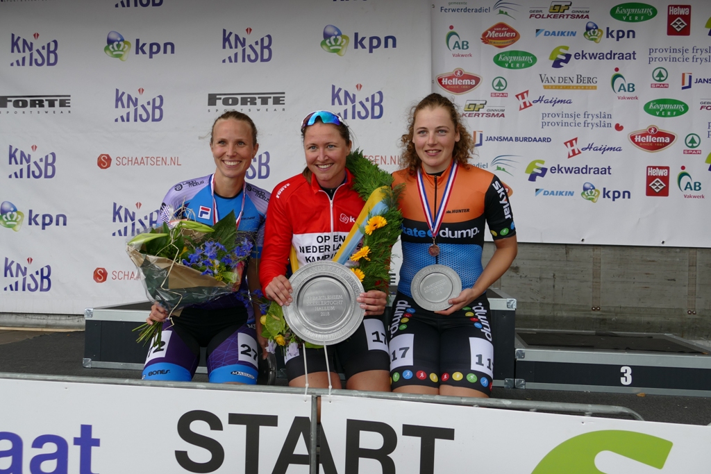 Om kwart over 2 starte de Derny koers met Nederlandse topsporters. Sjinkie knecht kwam als eerste over de finisch gevolgd door Daan Breeuwsma en Itzhak de Laat. Bij de dames was het de laatste wedstrijd voor Elma de Vries (35). Elma stopt ermee. De Friezin heeft in haar lange schaats – en inlineskate loopbaan vele prijzen gewonnen , zowel op de langebaan als bij de marathon en het inline -skaten. Naast Elma werd ook de winnaar van verleden jaar Crispijn Ariens gehuldigd.