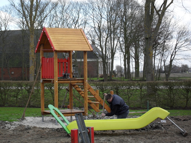 Twee weken geleden is er op verzoek van de gemeente door enkele vrijwilligers en plaatselijk loonbedrijf VOF van Lingen tijdens de nationale vrijwilligersdag “NL Doet” een drainage in de speeltuin aangelegd zodat de speeltuin een droge ondergrond krijgt . De toestellen zijn geplaatst door Handelsonderneming Klaas Bakker uit Wier, zo zijn er in de speeltuin zijn nu twee schommels geplaatst waarvan één een zogenoemde vogelnestschommel. Tevens is er een speelhuisje met glijbaan aangeschaft, zijn er nieuwe voetbaldoeltjes gekocht, is de wip wap opgeknapt en is er een nieuwe zandbak gekomen.
