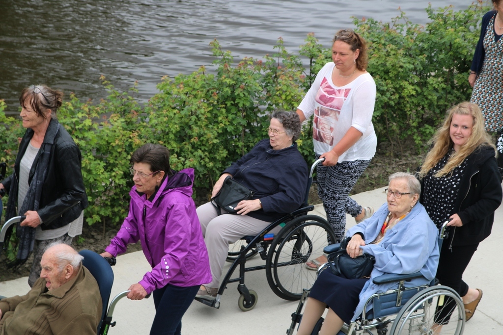 Dinsdagmiddag 30 mei was er een speciale rolstoelen en scootmobieltocht voor ouderen van Meckama State uit Kollum als thema “bewegen kunnen we allemaal”. Zo’n 40 deelnemers deden hier aan mee. Samen met familie bekenden vrijwilligers en personeel willde ze u allen de kans geven om er even op uit te gaan in Kollum eens te bekijken met o.a. bij de nieuwe wandelpaden aan het water.