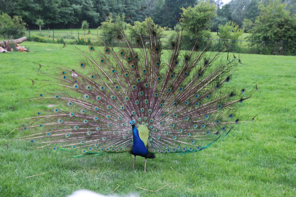Daarna ging de tocht door de mooie omgeving van Kollum richting hertenkamp. De gasten werd ontvangen door de beheerder Lauw Detmar die hun rond leidde en uitleg gaf over de dieren. Binnen de hekken kwamen al gauw de dieren op het gezelschap af om ze te voederen en te aaien ook de pauw spreidde zijn staart even uit voor de bezoekers.