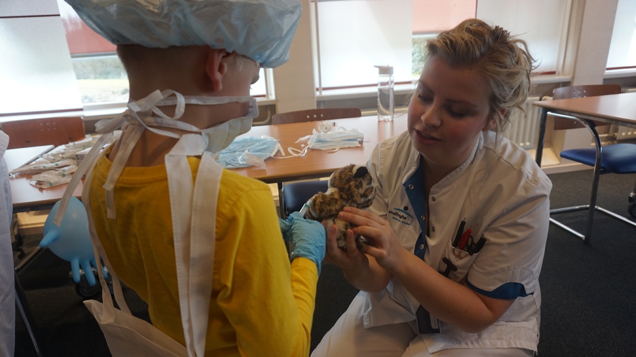 Een mondkapje, handschoenen en een operatiemuts zorgden ervoor dat de kinderen zich een echte dokter voelden. Daarna konden de kinderen bij de ‘apotheek’ een recept ophalen om hun knuffel thuis verder te verzorgen. Uiteindelijk verliet de groep het ziekenhuis in dokterstenue met knuffels, gewikkeld in verband en beplakt met pleisters.