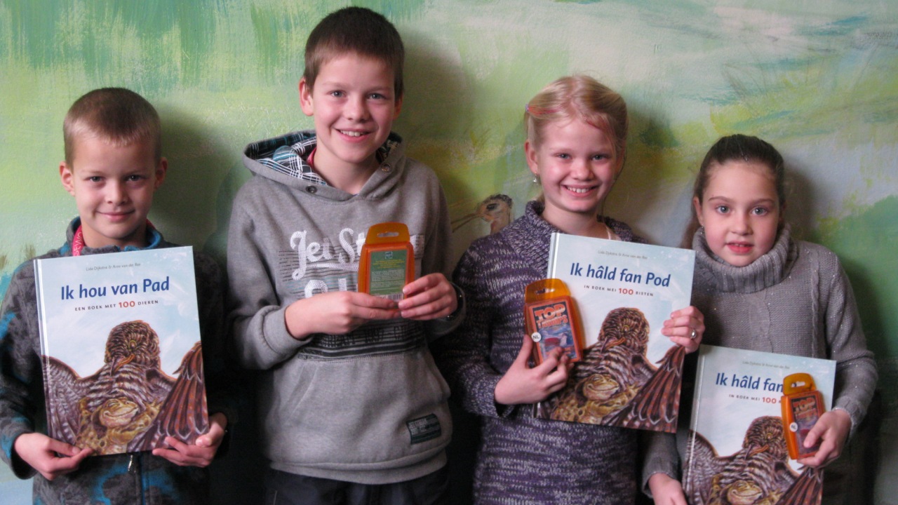 Natuurmuseum Dokkum had een wedstrijd over het stopzetten van de subsidie. Groep 3a van CBS De Bron in Dokkum had als klas een mooie inzending. Het knutselwerk symboliseerde de deuren van het museum die open moesten blijven. Zij hebben daarom het populaire boek “Ik hâld fan Pod” gekregen.