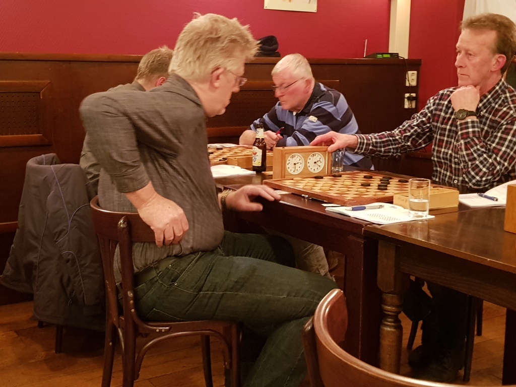 Met nog 3 ronden te gaan in de onderlinge van TTS blijken de zenuwen toe te slaan bij een aantal personen. Vier kandidaten in de B groep hebben nog kans op de eerste plaats en daarbij promotie naar de hoofdgroep te realiseren.2 Van de deze ronde aanwezigen kregen klop van een achtervolgers die glimlachend de punten lieten bijschrijven.