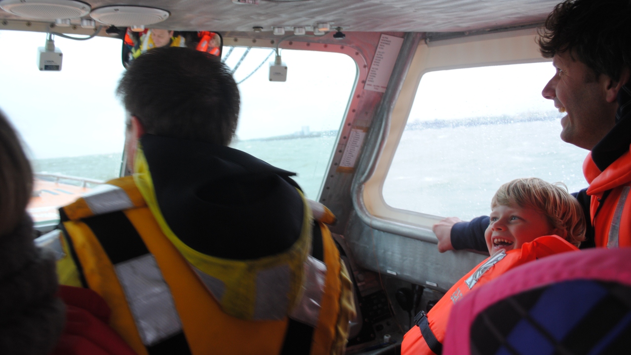 Een vaartochtje mocht natuurlijk ook niet ontbreken. Met ‘normaal’ rustig weer is dat al leuk maar met de ruige zee en de harde wind was het extra spectaculair voor de donateurs. De schipper toonde zijn stuurmanskunsten en jong en oud genoten hiervan. Er kon worden meegevaren op de reddingsboten Annie Jacoba Visser, Palace Noordwijk en op de Dr. Ir. S.L. Louwes.