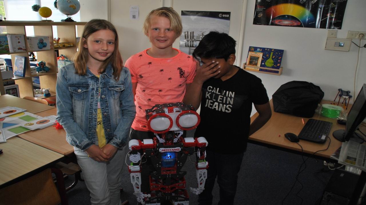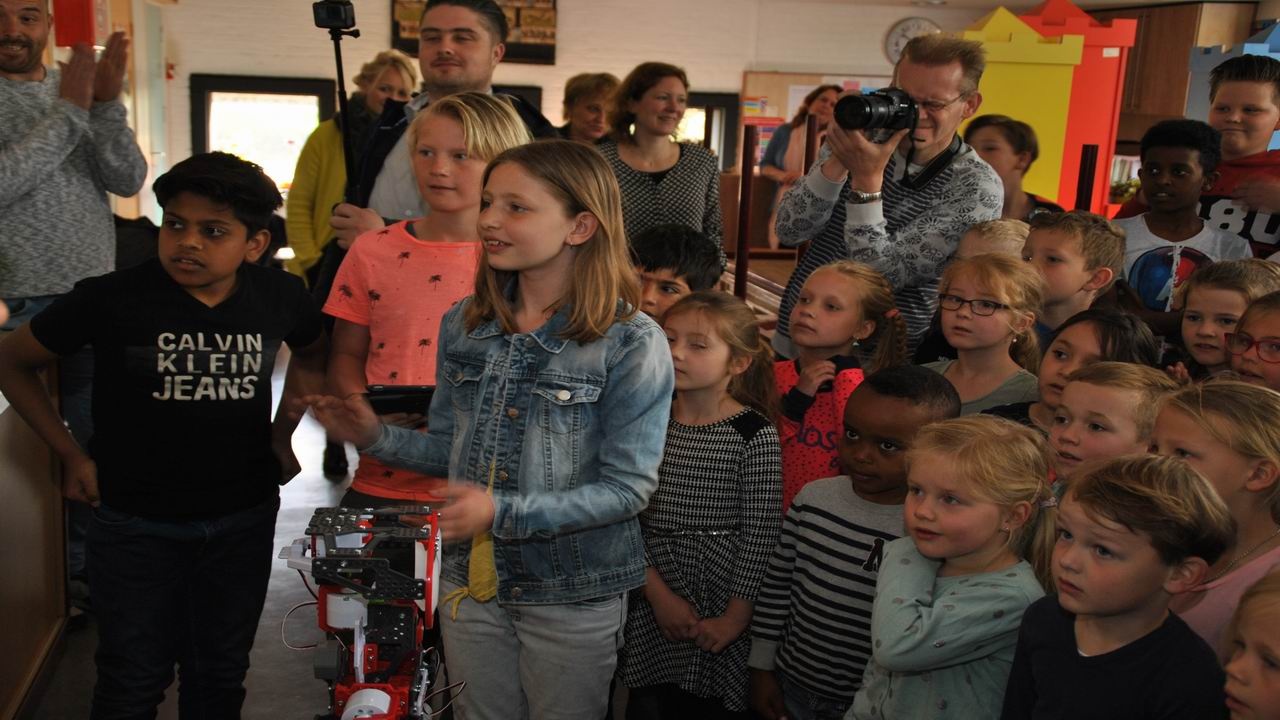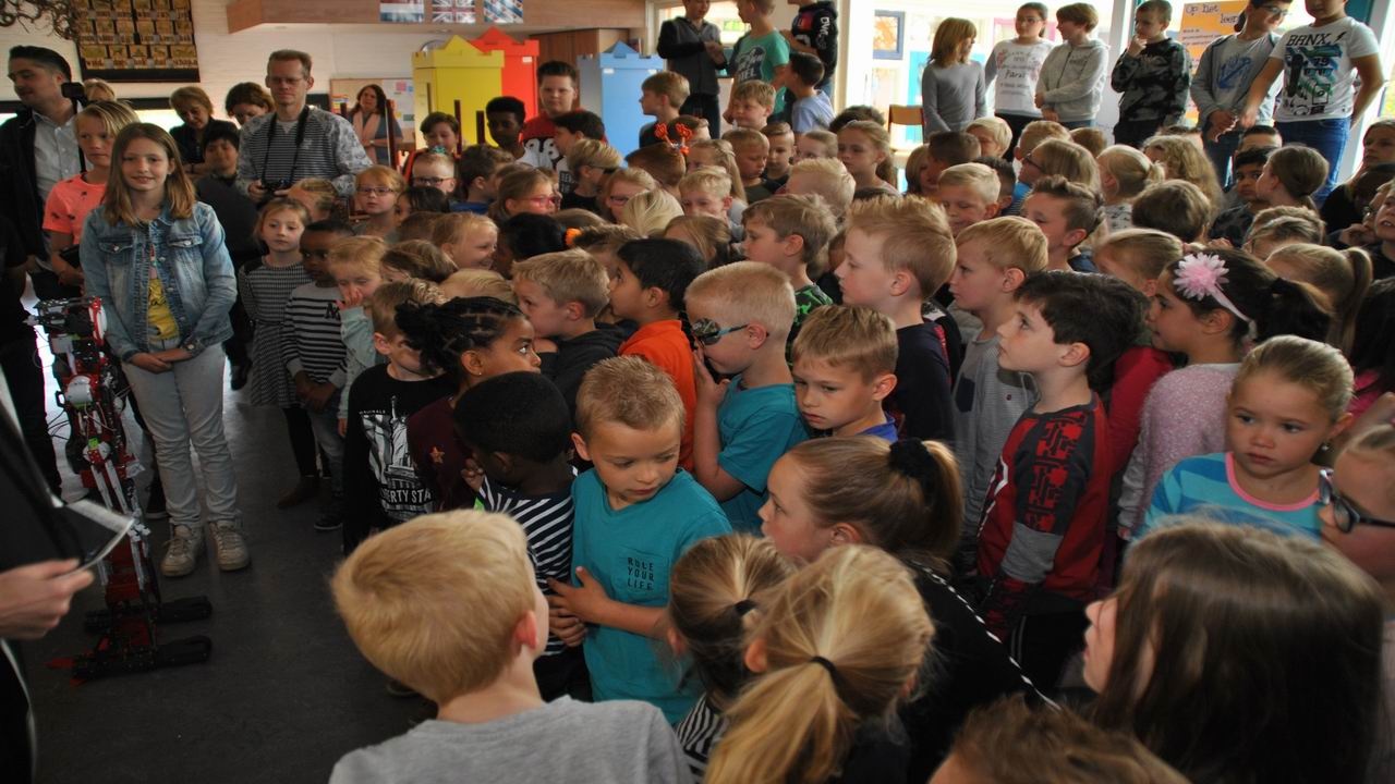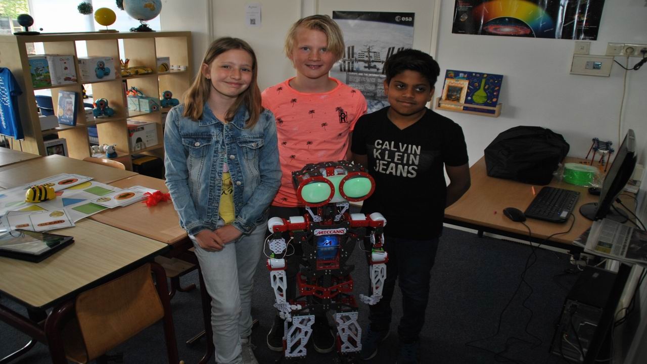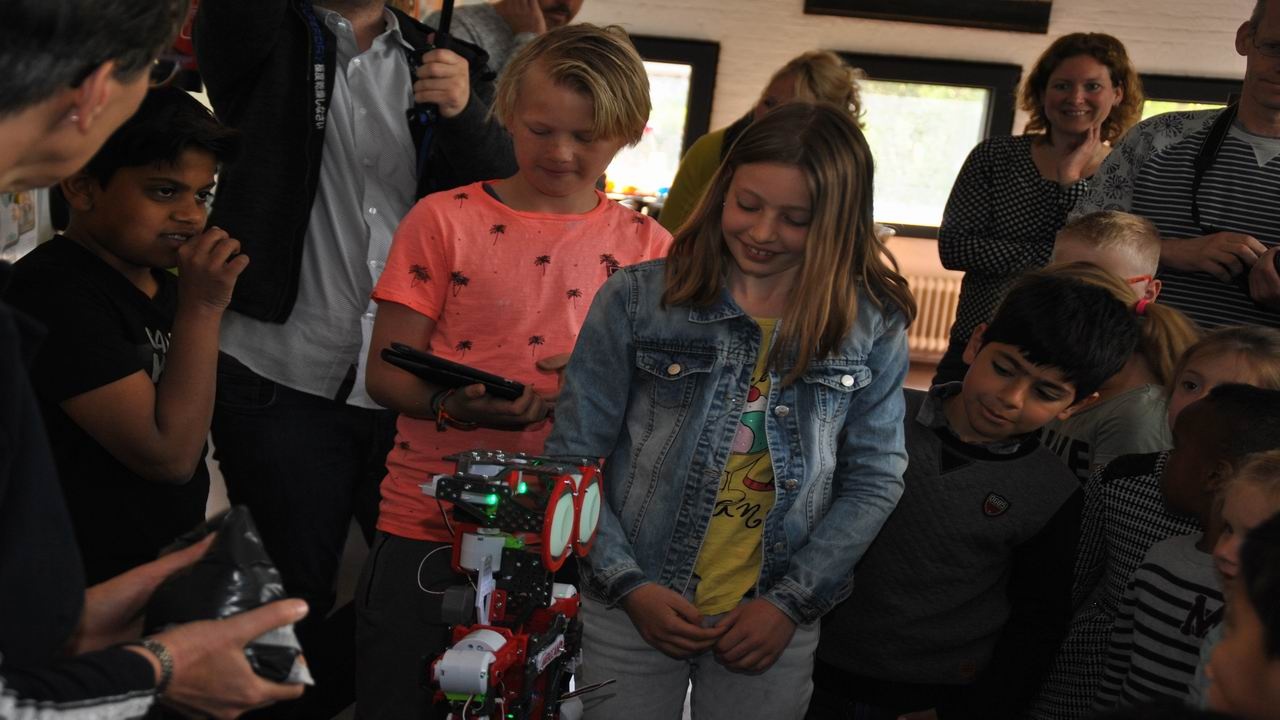 Donderdag 26 april heeft robot Teccie het Kidslab van obs Professor Casimir school geopend. Hij kwam door de deur en heette iedereen van harte welkom in het Kidslab.