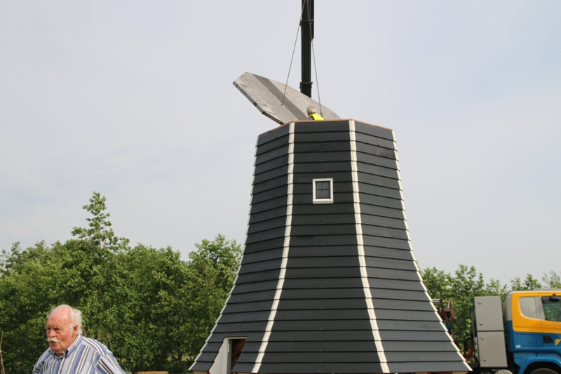 Zaterdagochtend 4 juli om 9 uur werd de gerestaureerde romp van poldermolen “De Mearmin” bij het cultureel historisch centrum De Sûkerei aan de Trekwei te Damwâld geplaatst.