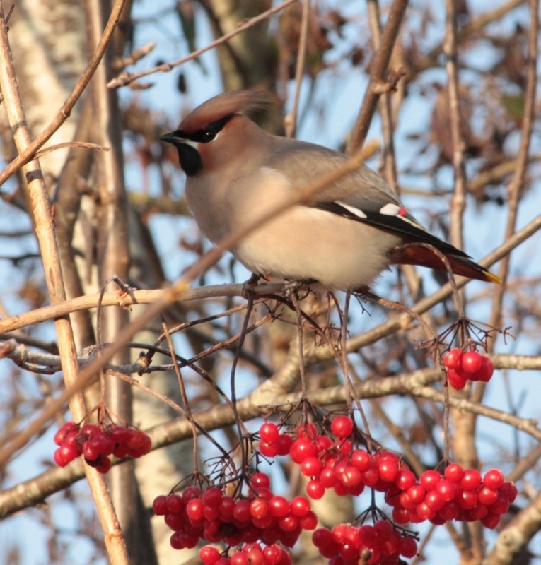 Zelf heb ik ook nog een paar foto’s bijgevoegd. De Pestvogel leeft zomers in Syberie en Scandinavie. Op het menu staan dan insicten en noten rozenbottel en mispels. Wanneer het in het noorden te koud wordt, of wanneer het voedsel daar op raakt, dan komen ze naar onze omgeving. Ook de insecten zijn hier in de winter slecht te vinden, vandaar dat zo op bessen overgaan. De favoriete bes is natuurlijk de Gelderse roos. Maar ook de lijsterbes en de bessen van de meidoorn worden veel gegeten. Syberie en het noorden van Scandinavie zijn dunbevolkt.Mensen worden dus niet echt als een gevaar beschouwd, vandaar dat ze bekend staan als een niet schuwe vogel. Met een beetje geduld en geluk kun je tot op een paar meter benaderen. Als je eenmaal op een fourageer post zit, dan kun je het best blijven zitten. Ze zullen ongetwijfeld wegvliegen, maar ze komen net zo gemakkelijk terug. Je moet dan ook niet vreemd opkijken dat ze op 2 meter afstand bij je vandaan, in een boom of struik gaan zitten.