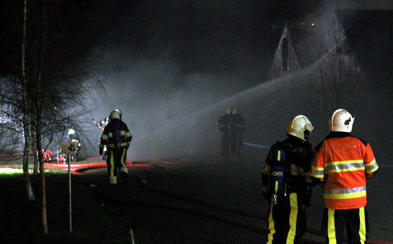 In de tussentijd werd door het korps van Buitenpost de waterwinning al gereed gemaakt en met een aantal stralen lage druk de blussing ingezet. Door de felle brand, sloeg het vuur al over naar een andere naastgelegen schuur. Ook waren tijdens de brand een aantal harde knallen vanuit de schuur te horen. Met man en macht heeft de brandweer de uitslaande brand bestreden.