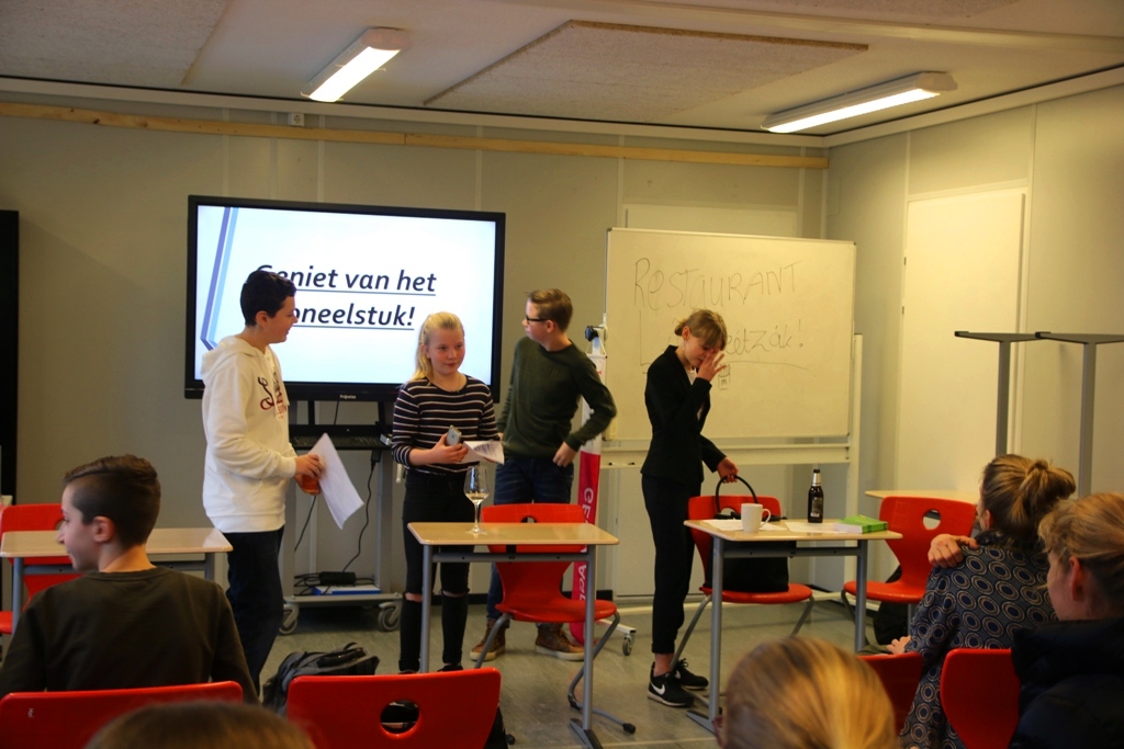 Vrijdagochtend 26 januari presenteerden de leerlingen de opbrengsten van de Settingweek aan hun medeleerlingen en ouders/verzorgers in de vorm van een striptekening en een toneelstuk. En dat alles in het Engels, Duits of Frans natuurlijk!