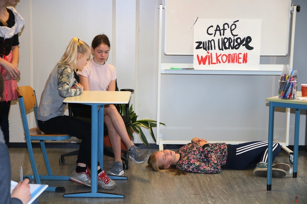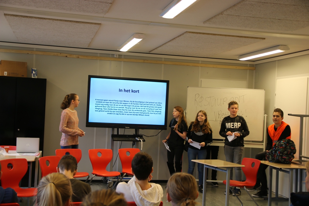 Vrijdagochtend 26 januari presenteerden de leerlingen de opbrengsten van de Settingweek aan hun medeleerlingen en ouders/verzorgers in de vorm van een striptekening en een toneelstuk. En dat alles in het Engels, Duits of Frans natuurlijk.