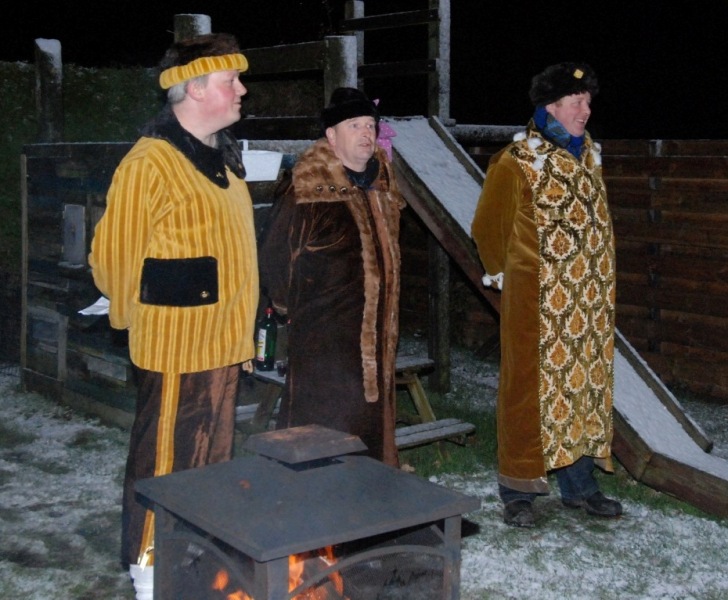 Met als startplaats de school trokken groepjes leerlingen, met ouders, pake’s en beppe’s en vele andere belangstellenden het dorp in op weg naar de stal om het wonder van kerst te aanschouwen. Als eerste kwamen ze de bode van keizer Augustus tegen die voor zijn belastingopbrengst het volk liet tellen, daarna een meer dan enthousiaste heraut die een ieder kenbaar maakte dat Jezus was geboren.