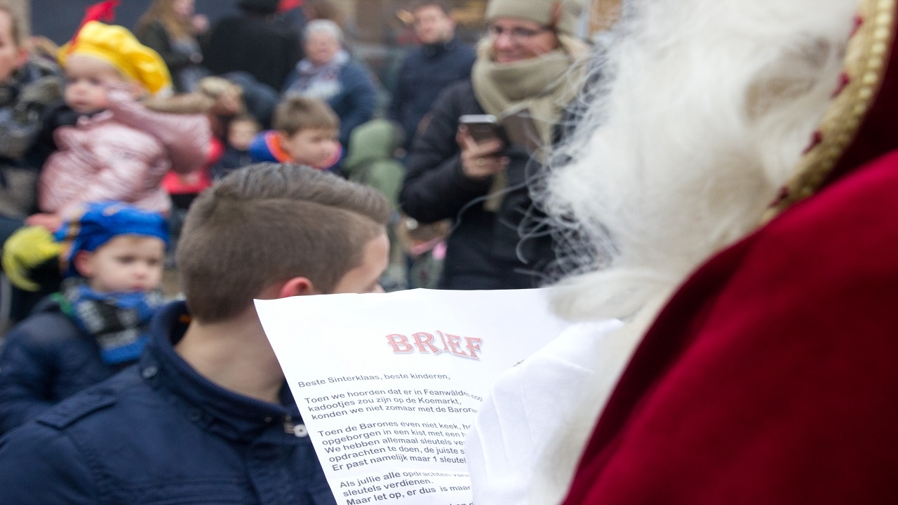 In Feanwâlden liepen de spanningen zaterdagmiddag weer hoog op. Sinterklaas en zijn pieten kwamen nogmaals langs op de Koemarkt om de pakjes uit te delen.