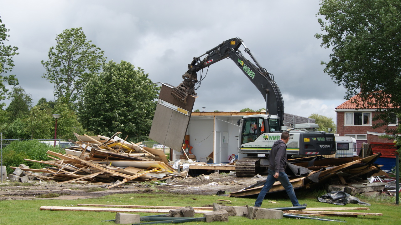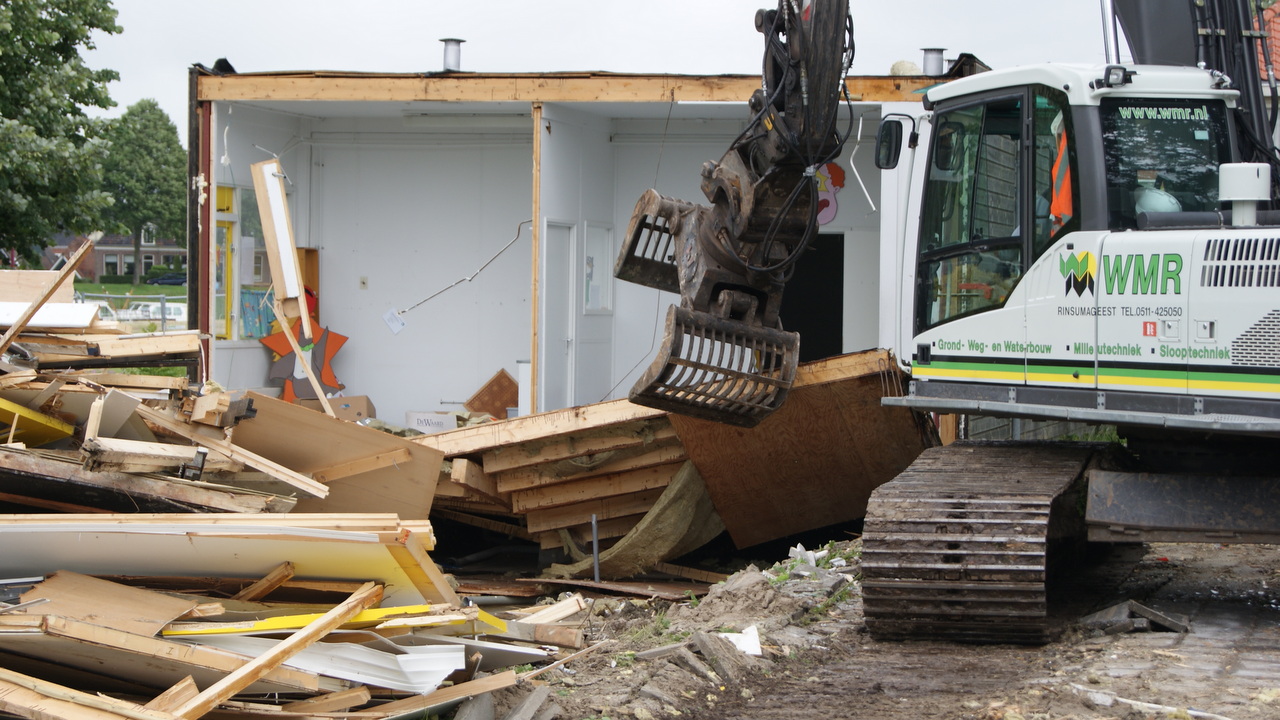 Maandagochtend rond 8 uur is er begonnen met de sloop van de oude peuterspeelzaal aan de Hoedemakersweg in Dokkum. Dit gebouw diende als een noodgebouw, om later de peuterspeelzaal over te plaatsen naar de Groen van Prinstererschool.