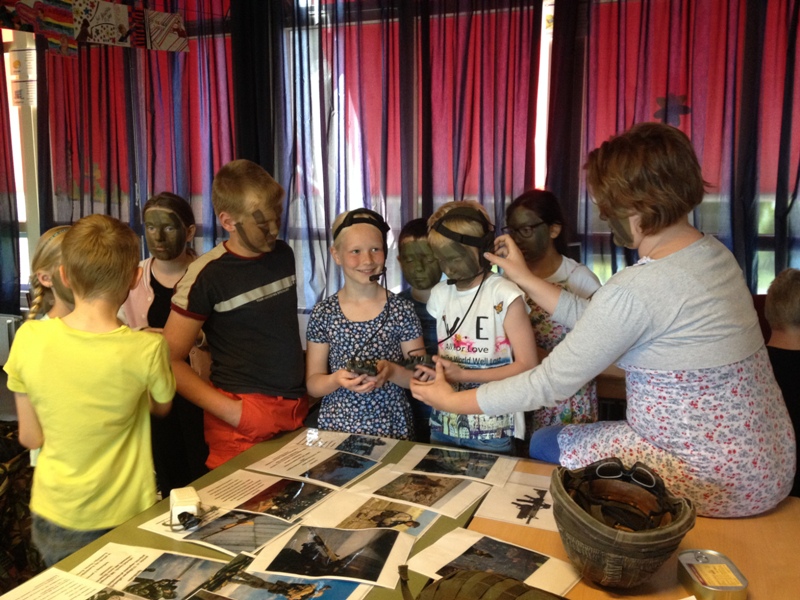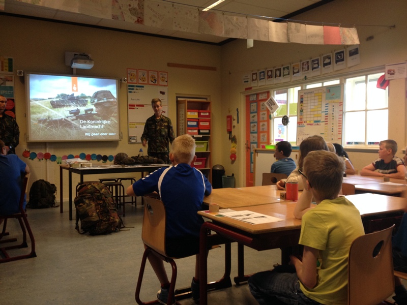 Soldaten in de klas op C.B.S. ‘t Oegh