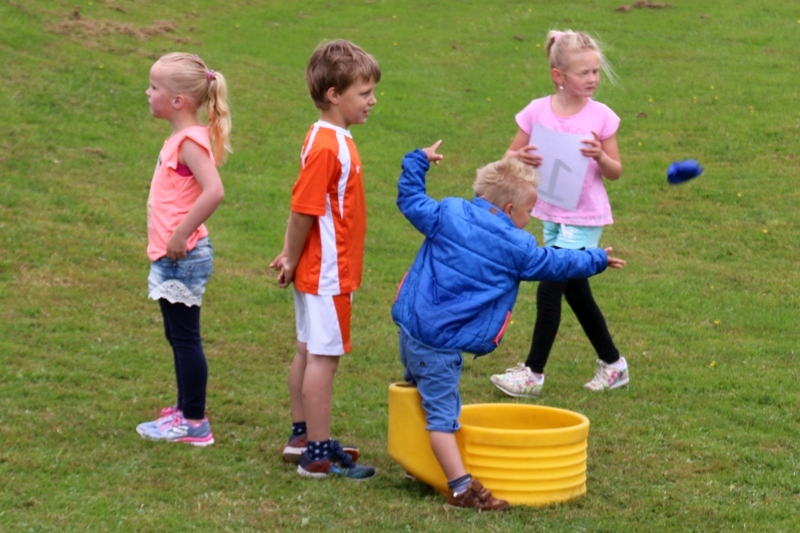 Het was wat koud maar daar hadden de kinderen geen last van die maakten alleen maar plezier, zelfs de regendruppels werden niet opgemerkt. De kinderen hadden pauze om 10 uur maar konden bijna niet wachten verder te gaan. Met makkelijke, moeilijke en rustgevende spelletjes waren de kinderen dolgelukkig.