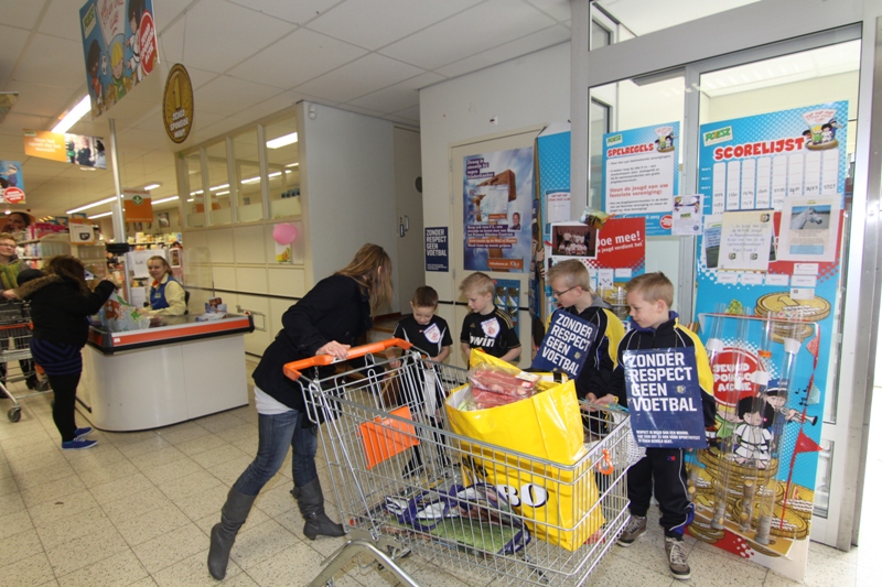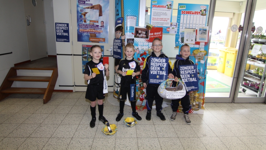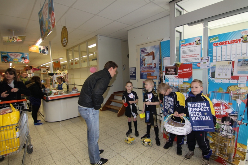 De jeugd deed dit in het teken van het hedendaags veel besproken onderwerp “Zonder respect geen voetbal.” Er stonden zaterdagmiddag twee jeugdige scheidsrechters om de sponsormunten in ontvangst te nemen. Ook stonden er twee jeugdleden die pepermuntjes uitdeelden aan het winkelend publiek met de slogan:”Jo krije fan us in ( peper)muntsje, krije we jo (sponsor)muntsjes ?”.