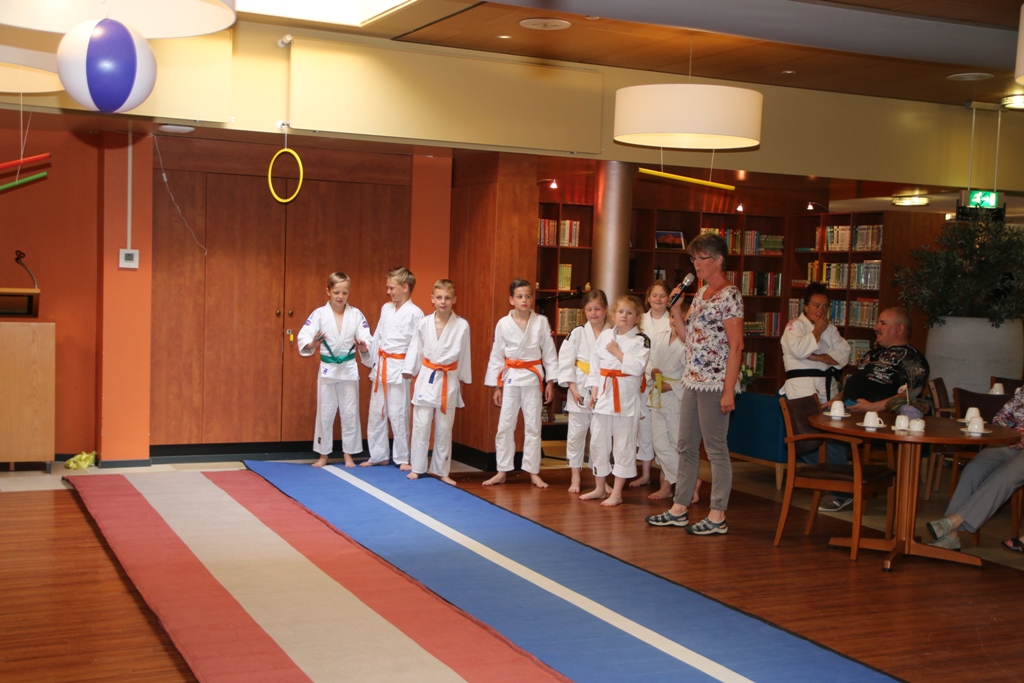 Enkele jeugdleden van de Judo club Kollum gaven meerdere demonstraties, waarbij valtechnieken, verschillende worpen en grepen aan de orde kwamen.