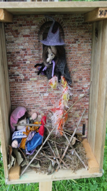 In de Schierstins-tuin staan sinds april 17 kistjes op palen. Niet over de stinzeplanten, die ook volop bloeien, maar over het sprookje Raponsje.