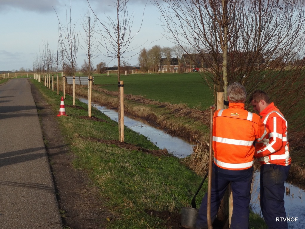 Het zijn iepen met de namen Clusius, Dodoens, Laevis en Rebona. Door het planten van een mix van iepenklonen, zijn de bomen minder kwetsbaar voor de iepenziekte. Waarschijnlijk worden de bomen nog voorzien van een kaartje met de naam. Naast Tom van der Beek en Corine Verbeek en uitvoerend personeel van de gemeente Kollumerland c.a., die ook al een hele rij bomen hebben geplant, waren aanwezig vertegenwoordigers van Stichting Iepenwacht Fryslân en Noordplant Kwekerijen uit Glimmen.