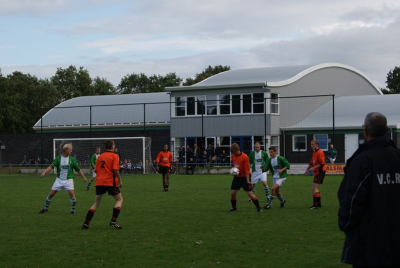 Na het nodige zelfvertrouwen te hebben getankt in de voorgaande twee wedstrijden tegen twee pittige tegenstanders begon de thuisploeg zeer geconcentreerd tegen titelkandidaat Suameer. Vooraf was VCR gewaarschuwd voor de stootkracht van de aanvalslinie van de groen-wit hemden maar de VCR defensie onder leiding van aanvoerder Anton Prins stond als een huis en gaf weinig ruimte weg. Suameer kon geen vuist maken en liep zich constant stuk op deze hechte muur. Combinerend was Suameer de betere van het stel maar VCR probeerde daar waar mogelijk was de ploeg van trainer Marcel Hiemstra onder druk te zetten. Maar tot echt vloeiende aanvallen kwamen beide ploegen niet. Veel speelde zich af op het volle middenveld en beide keepers Hans Wassenaar en Gerard de Haan kregen niet al teveel werk te verrichten. Rond het half raakte de thuisploeg de grip op het veld enigszins wat kwijt door concentratieverlies door het strooien met een aantal slordige passes. Langzaam maar zeker ebte het zelfvertrouwen weg en kwam Suameer beter in de wedstrijd en probeerde VCR haar wil op te leggen, maar tot veel verder dan enkele speldenprikjes leverde dit overwicht niet op. En zo mochten beide teams de kleedboxen opzoeken met een 0-0 stand en een nat pak door een flinke regenbui.