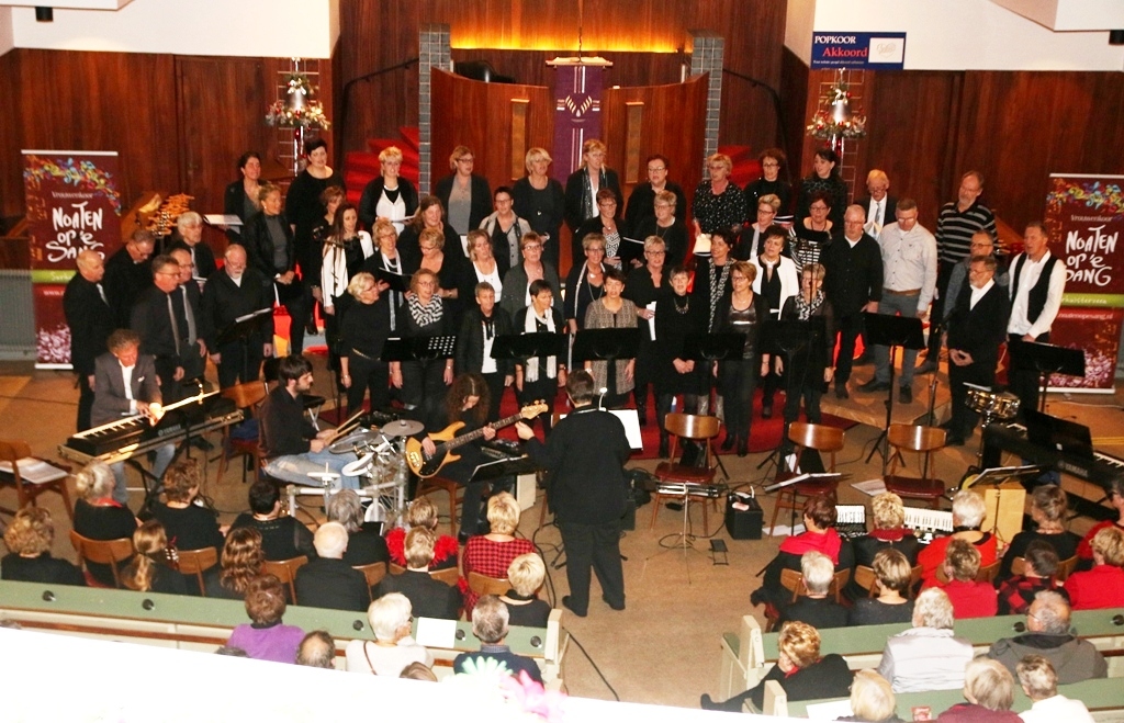 Veel belangstelling Op donderdagavond 22 dec bij het Kerstconcert in de Oosterkerk in Kollum met optreden van het Popkoor “Akkoord” uit Surhuizum gezamenlijk met Vrouwenkoor “Noaten op e Sang” uit Surhuisterveen.