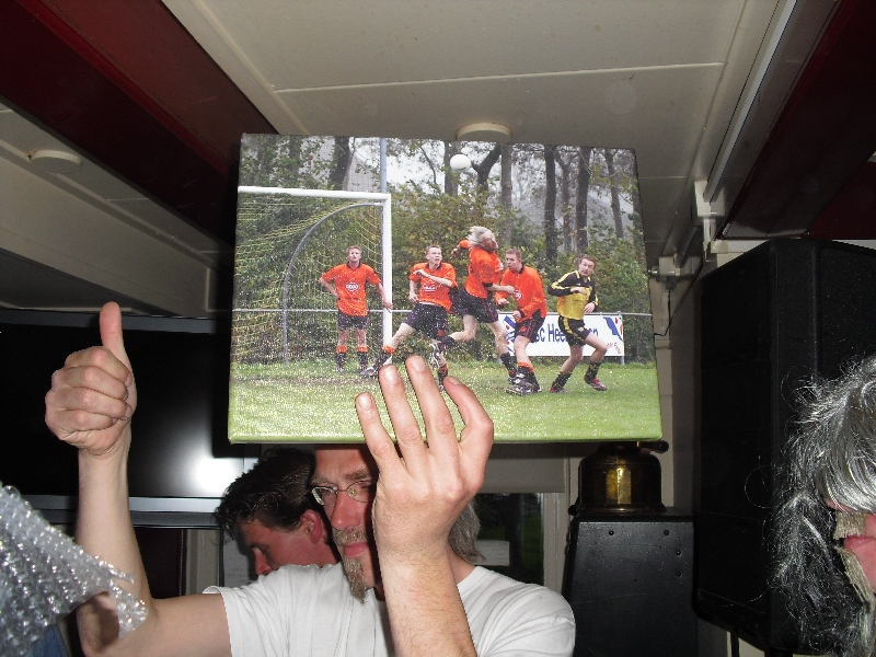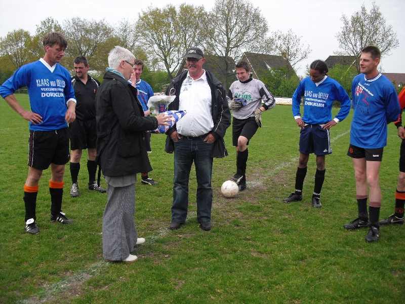 En later op de avond in het feestgedruis in cafetaria “De Bantammer” kregen de broers een shirt met naam en een grote actiefoto door de spelersgroep uitgereikt. Als klap op de vuurpijl werden de beide hoofdrolspelers nog getrakteerd op een spetterend optreden van hun echtgenotes als Mouth and MacNeal met het wereld bekende nummer: “How do you Do”. Een waardig afscheid en een zeer geslaagd afscheidsfeest ter ere van twee echte clublieden, SJOERD EN HOEKE SJOUKE HIEMSTRA.