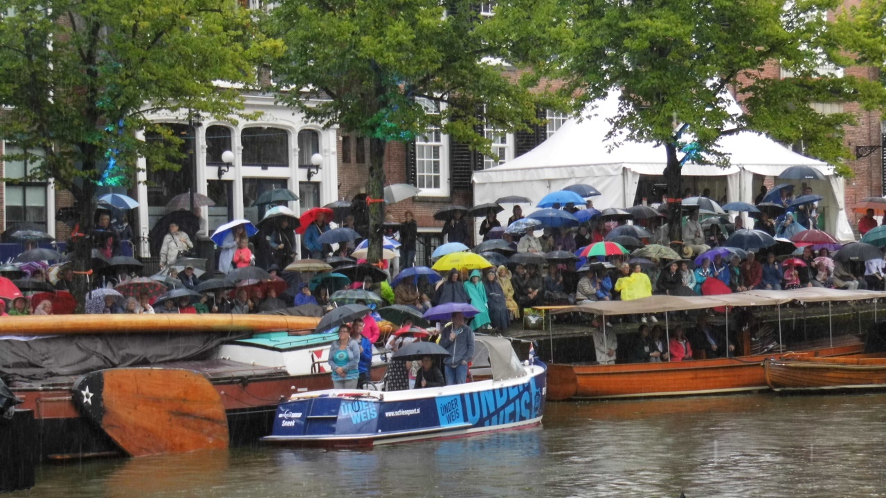 Na de dienst, die iets eerder eindigde vanwege de hevige regenval, bleef een groot deel van de mensen nog voor een bakje koffie in de Dokkumer binnenstad hangen. De Admiraliteitsdagen beleven zondag haar laatste dag, het evenement kent zondagmiddag met een Meezingconcert het einde van de zesde editie.