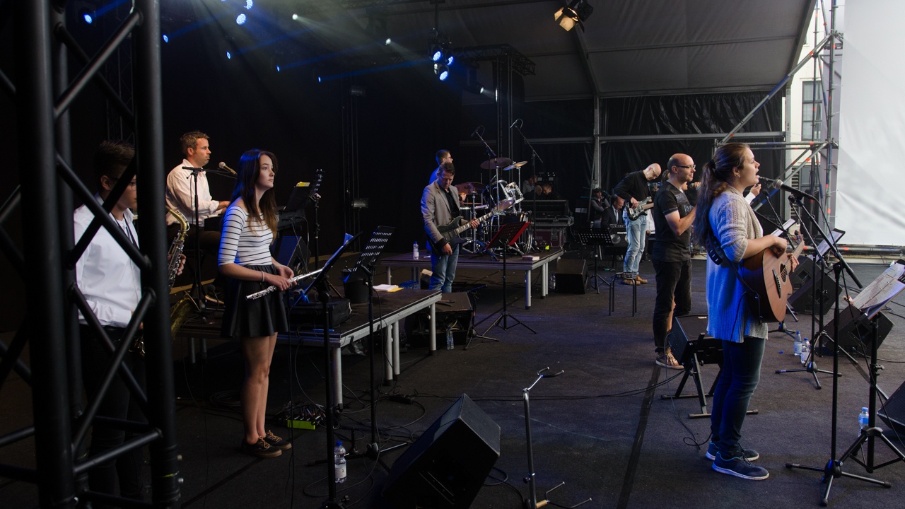 De nodige muziek stond onder aanvoering van Egon van der Meulen. De collecte van deze bijzondere openluchtdienst gaat naar Stichting Vluchtelingenwerk. De Sportkerk Dokkum leverde een spectaculaire bijdrage door op het water de verbinding uit te beelden tussen de verschillende kerken.