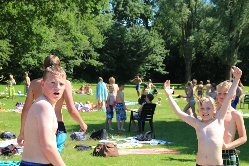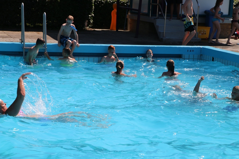 Zo’n 500 bezoekers ouders met kinderen en jeugd zochten woensdag 1 juli verkoeling in het zwembad It Paradyske bij Kollum bij zo’n 30 graden. Ook op de speelweide was het een drukte van belang onder de bomen was het lekker koel. Één en al een gezellige drukte.
