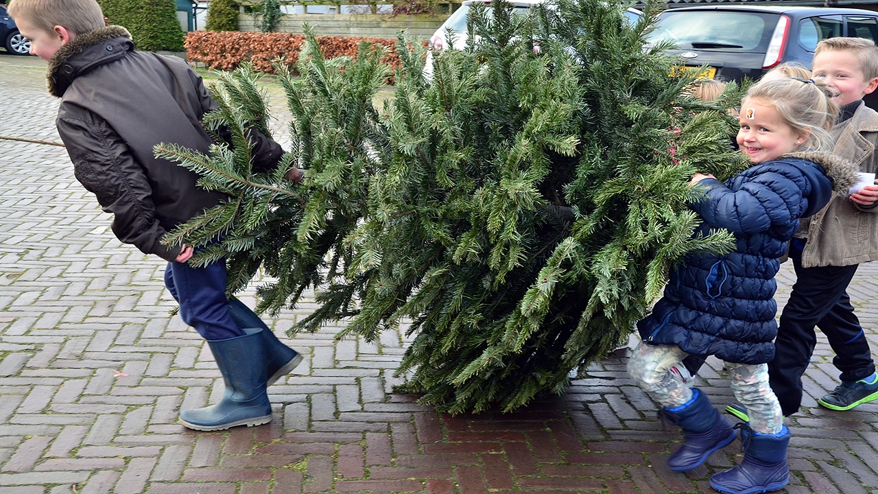 VIDEO: Anjumer kinderen slepen kerstbomen