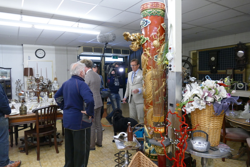 De heren ‘struinden’ op zoek naar koopjes vol interesse de winkel door. Veel belangstellenden keken toe hoe dat nou precies gaat met tv-opnamen en sommigen gingen met het tweetal op de foto.