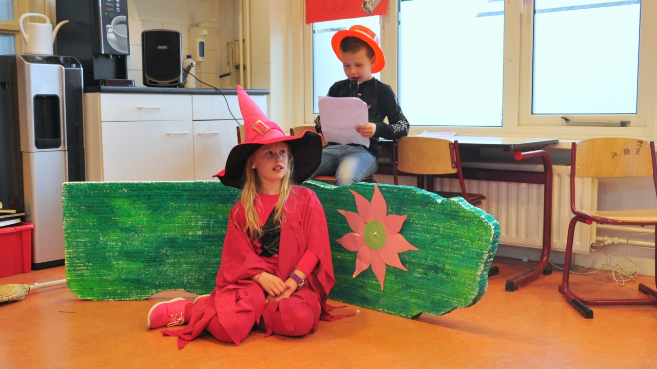 Ze speelden vol enthousiasme fragmenten uit de boeken Pudding Tarzan, Foeksia en Mees Kees. Iedereen heeft genoten. Het was een zeer geslaagde voorstelling.
