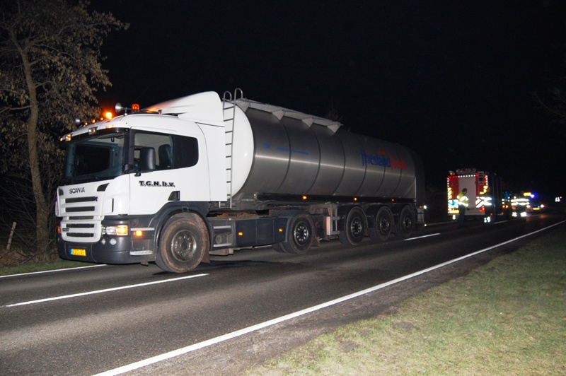 Zaterdagavond is een melkvrachtwagen op de scheiding bij Surhuisterveen met pech komen staan door een defect aan de remmen. Nadat de chauffeur de combinatie stil had gezet bleek onder de wagen enige rookvorming zichtbaar. Daarop werd de brandweer van Surhuisterveen gealarmeerd.
