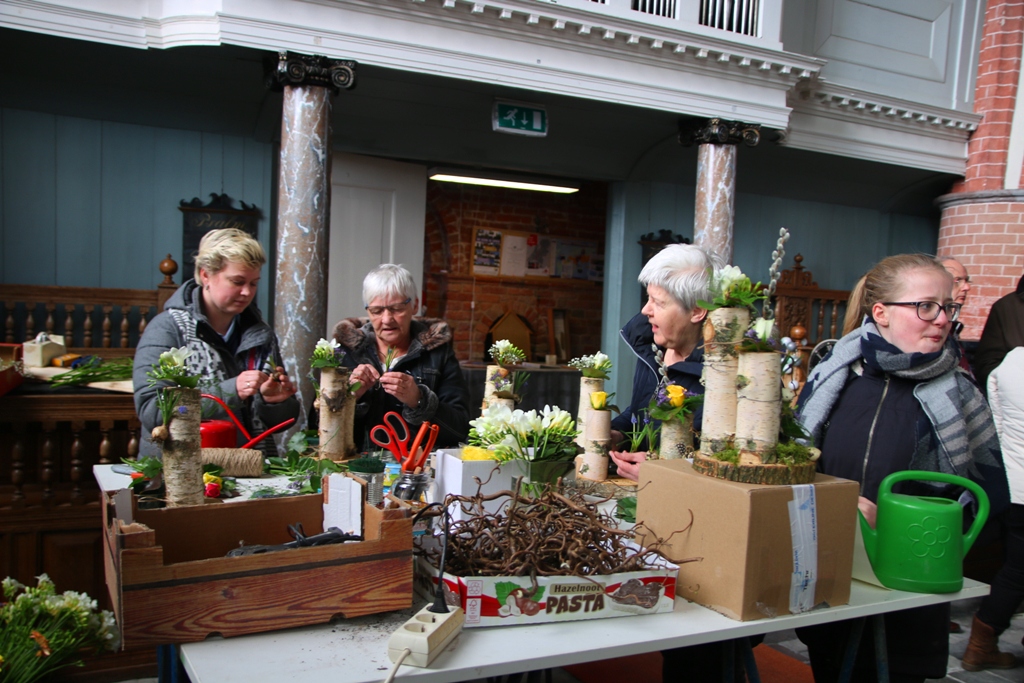 Samen Sterk voor de kerk, organiseerde op 17 maart van 10.00 tot 16.00 uur in de Maartenskerk te Kollum een ‘vrolijke voorjaarsdag’ voor het hele gezin. Men kon een lente bloemstukje kopen of maken. Verder was er een workshop egeltje maken van een boek en konden meisjes hun haar laten invlechten. Ook kon men een rollade winnen door het gewicht te raden.