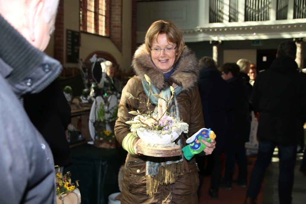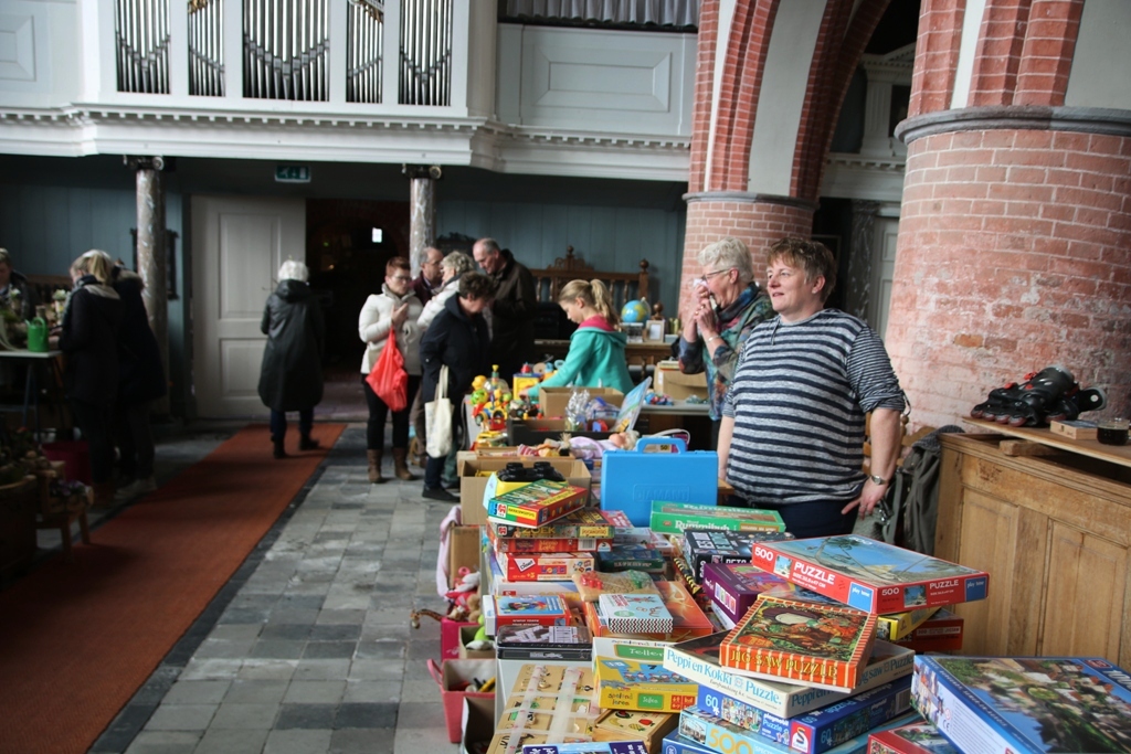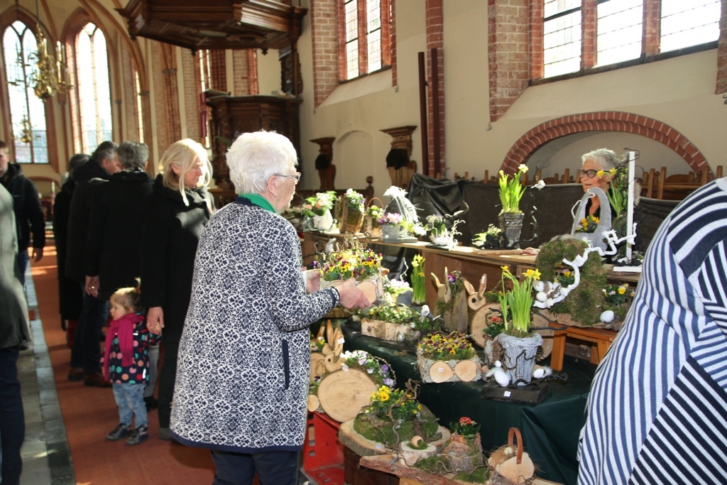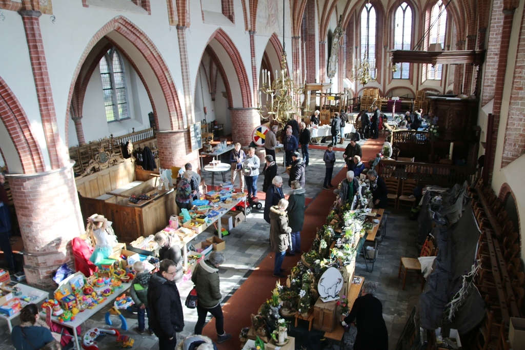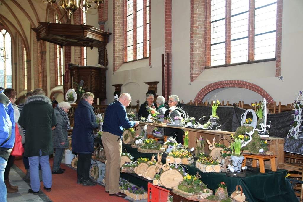 Er was veel belangstelling op de voorjaarsmarkt. Door het koudeweer profiteerde de binnen activiteiten in de Maartenskerk te Kollum.