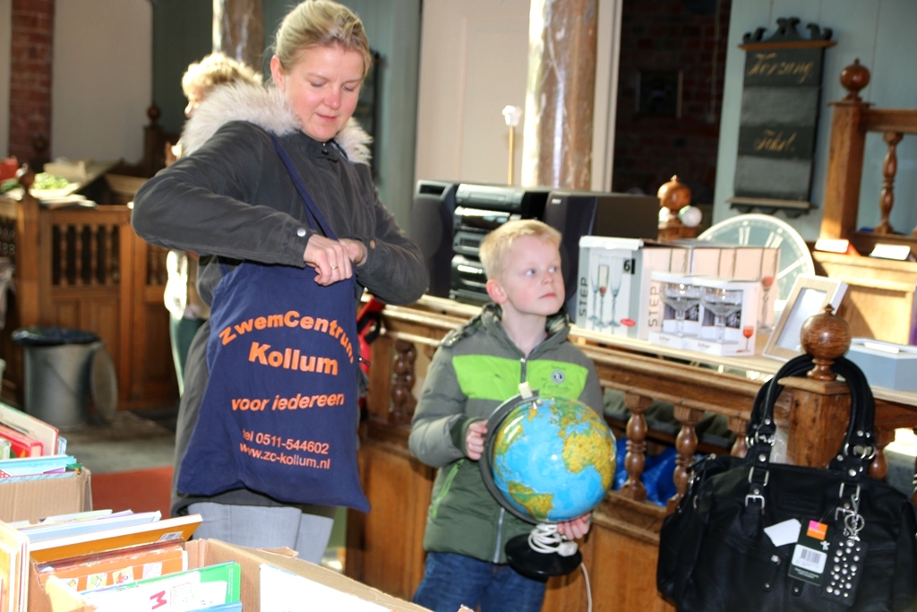 Er was veel belangstelling op de voorjaarsmarkt. Door het koudeweer profiteerde de binnen activiteiten in de Maartenskerk te Kollum. De koffie met cake stond weer klaar en ook was er het lunch café met soep en broodjes.