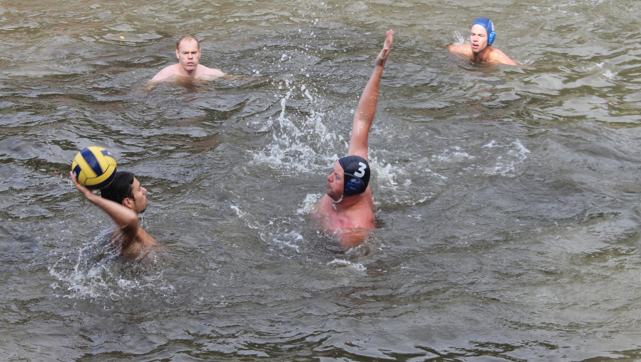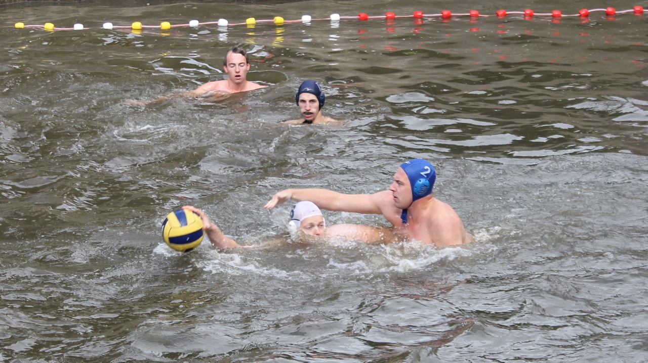 De waterpoloheren van Z&PC De Graneat uit Dokkum en Z&PC Middelsee uit Stiens speelden zondag een vriendschappelijke strijd in de grachten van Dokkum.
