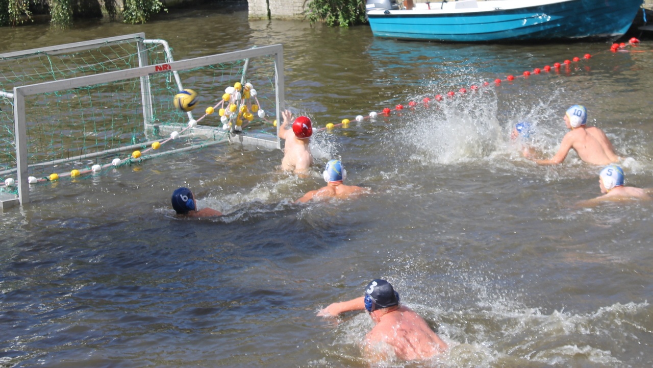 De waterpoloheren van Z&PC De Graneat uit Dokkum en Z&PC Middelsee uit Stiens speelden zondag een vriendschappelijke strijd in de grachten van Dokkum