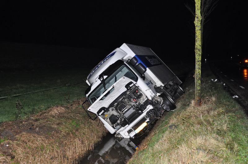 Aan de Gaaikemaweg bij Niehove is donderdagmiddag een vrachtwagen in de sloot beland. De chauffeur reed richting Kommerzijl, waar hij na een bocht door nog…