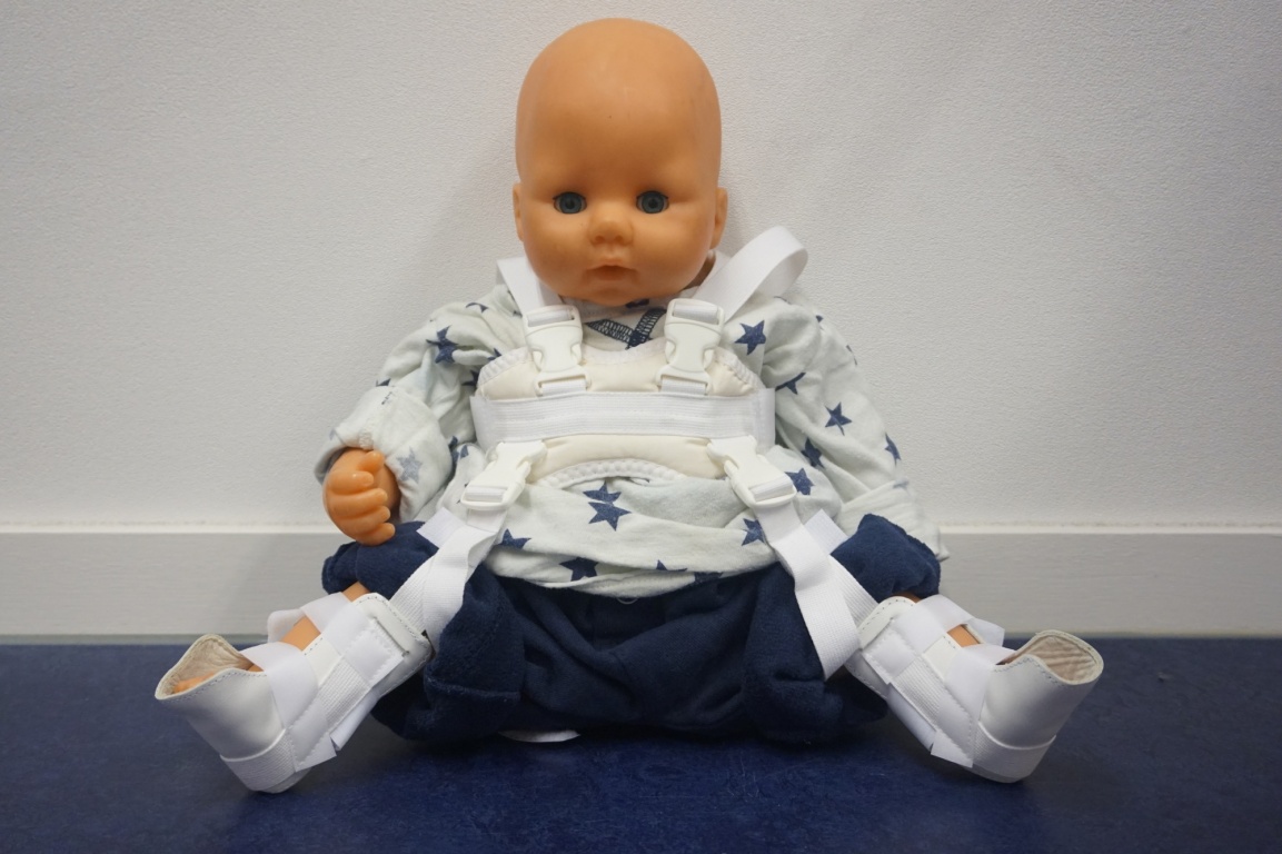 “In Nij Smellinghe gebruiken we een pop om aan de ouders van kindjes te laten zien wat een harnasje is. De pop demonstreert wat het is en hoe het werkt. Hierdoor worden veel vragen van ouders beantwoord en is het fijn om te weten wat hun kindje te wachten staat. Vervolgens wordt bij het kindje thuis, in de eigen vertrouwde omgeving, het harnasje aangelegd door een deskundige orthopedisch instrumentmaker”, vertelt orthopeed Richard Bimmel.