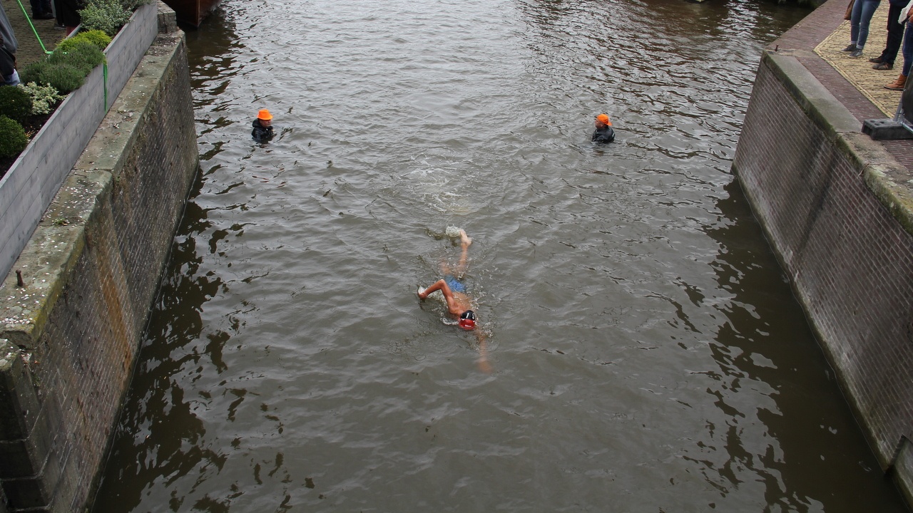 Hierna zwommen de deelnemers een rondje om de binnenstad van Dokkum, door de Driepypstergracht, Parkstergracht, Noorder Gracht, Hardridersgracht en vervolgens door het Grootdiep, onder de Zijl door. De finish was in het Kleindiep, voor het hoofdpodium van de Admiraliteitsdagen.